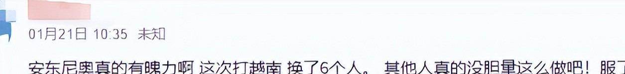 半决赛对阵越南队,主帅更是做出了令人惊讶的轮换决定,更换六名首发球员。