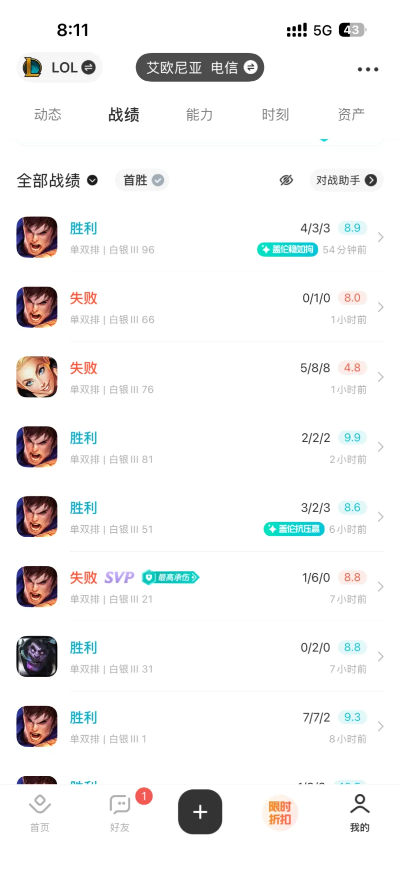 就在我觉得上黄金指日可待的时候,我又打了三把,虽然是一胜两败,但是我发现这三把和前面都不一样,战局节奏加快了,对手的意识也更强了,明显和前面不一样了,我打的也更谨慎了,但是还是很吃力…